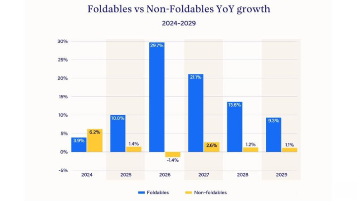 这一报告揭示折叠屏市场的成熟路径,通过激烈竞争和技术迭代,预计到2029年将实现更广泛采用,但增长依赖于解决耐用性和价格障碍。