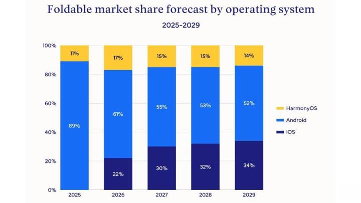 报告强调,苹果的加入将成为关键转折点,推动折叠屏从 niche 产品向主流转型。三星目前主导市场,但华为通过本土优化软件和硬件,正逐步蚕食份额。相关分析显示,2024年三星折叠屏出货量约占全球一半,华为则凭借Mate系列在我国市场领先,预计2026年其折叠出货量将翻番。